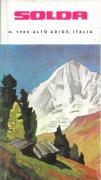 Abstract: Opuscolo pieghevole di Solda all'Ortles inerente la stagione estiva con cartina panoramica di H. Oberbacher. Tema grafico: stampa pittorica di Franz Lenhart raffigurante due rifugi/capanne e il Gran Zebrù sullo sfondo.