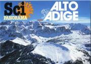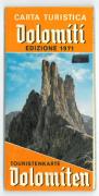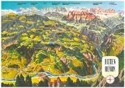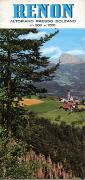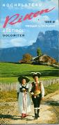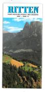 Opuscolo pieghevole, 24 pp., a colori, Alta Badia, Corvara, Colfosco, La Villa, S. Cassiano, Pedraces, con numerose illustrazioni fotografiche di scorci paesaggistici e una cartina panoramica di Matthias con gli itinerari escursionistici segnalati, nonchè informazioni sugli orari delle escursioni e delle gite. Foto di: Riva, Planinschek, Pider, Kostner, Flaim, Tappeiner. Motivo: rappresentazione grafica a colori di un paesaggio montano e di un prato, con genziana e stella alpina, su sfondo rosso, e, grande sole giallo; forse di Matthias, vedi lettera "M" in basso a destra. Scritta "Alta Badia", su disegno di Arthur Zelger, con le quattro vocali A prive della traversina orizzontale.