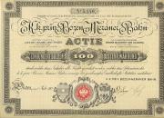 Abstract: Azione della “K.K. Ferrovia privata Bolzano-Merano” di 100 fiorini dell'anno 1882.