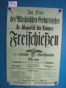 Abstract: K.k. Haupt- Schießstand Meran - 'Zur Feier des Allerhöchsten Geburtsfestes Sr. Majestät des Kaisers Freischießen den 18., 19. und 20. August ...'