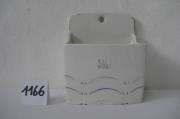 Abstract: Salzgefäß mit einem Loch zum Aufhängen an der Wand und einem kastenförmigen Behälter für das Salz; an der Vorderseite wellenförmiger Dekor in blau und gold; darüber die Schrift "SALL"; Goldrand.