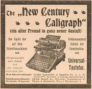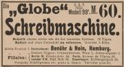 Abstract: annuncio pubblicitario per macchina da scrivere a indice Globe (American) Allein-Vertrieb für Deutschland: Benöhr & Hein, Hamburg monocromo