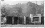 Abstract: Meran - Friedhof - Der Soldatenfriedhof (Militärfriedhof) mit der neuen Kapelle, in deren Gruft Tenente Siegfried Wackernell und Maresciallo Otto Huber bestattet wurden