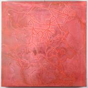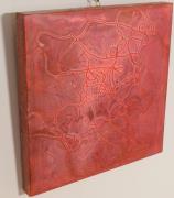 Abstract: Abstrakt in Rot mit aufgeklebtem Faden