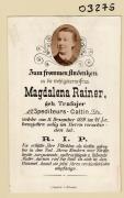 Abstract: Sterbebild von Magdalena Rainer geb. Trafojer, Spediteurs-Gattin Gest. am 11.12.1889 im 41. Lebensjahr mit Foto