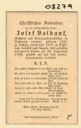 Abstract: Sterbebild von Josef Baldauf, Gastwirt und Telegraphenaufseher in Nassereut (Tirol) Geb. 1831 in Stuben, gest. am 20.09.1890 in Nassereut ohne Foto