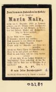 Abstract: Sterbebild von Maria Mair Geb. am 05.12.1868 in Lermoos (Tirol), gest. am 27.10.1890 ohne Foto