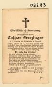 Abstract: Sterbebild von Caspar Sterzinger, k.k. Postmeister und Gasthofbesitzer in Nassereith (Tirol) Geb. am 11.06.1818, gest. am 14.06.1891 ohne Foto