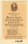 Abstract: Sterbebild von Maria Hofer Gest. am 04.02.1893 im 79. Lebensjahr ohne Foto Sterbebild von Ursula Hofer Gest. am 31.06.1884 im 64. Lebensjahr ohne Foto