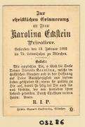 Abstract: Sterbebild von Karolina Eckstein, Privatiere Gest. am 12.02.1893 in München im 75. Lebensjahr ohne Foto