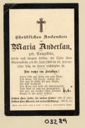 Abstract: Sterbebild von Maria Anderlan geb. Rungeldier Gest. am 20.06.1893 im 46. Lebensjahr ohne Foto