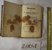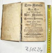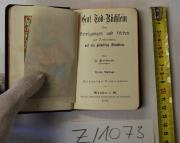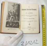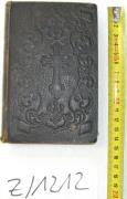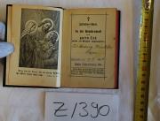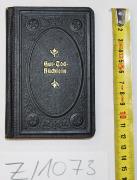 Verlag: HH. Fel. Ackermann Druck: Ad. u. P. von Matt, Stand 12. Auflage Auf dem Titelblatt "Sterbetrost. 'So seid auch ihr bereit' Gebets- und Andachtsbüchlein für alle Christen insbesondere für die Mitglieder der trostreichen Bruderschaft vom guten Tode und für Soldaten. Mit kirchlicher Genehmigung von C. J. Eisenring, Pfarrer. Zwölfte, vermehrte Auflage. Im Verlage von HH. Fel. Ackermann, Pfarrer, Küsnacht, (Zürich). 1905." Auf der zweiten Seite der handschriftlich ausgefüllte Aufnahmeschein für die Burderschaft vom guten Tod für Hedwig Winkler, Bozen vom 8. Februar 1906. Schwarz/weiß gedruckt, gotische Buchstaben, illustriert. Deckel schwarz, allseits eingepresste Ornamente; auf der Vorderseite in Goldbuchstaben der Titel des Buches, darunter eine Collage aus Anker, Kelch, Kreuz und Buch.