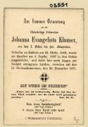 Abstract: Sterbebild von Johanna Evangelista Klauser aus dem 3. orden des heil. Franziskus Geb. am 23.10.1848 in Kaltern, gest. am 20.12.1871 ohne Foto