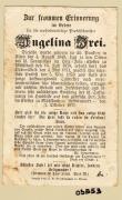 Abstract: Sterbebild von Angelina Frei, Orden des hl. Franziskus im Herz-Jesu-Kloster in Mühlbach Geb. am 04.08.1849 in St. Pankraz in Ulten, gest. am 07.10.1878 in Mühlbach ohne Foto