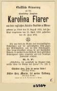 Abstract: Sterbebild von Karolina Flarer aus dem englischen Fräulein-Institutes zu Meran Geb. am 21.08.1833 in Tirol, gest. am 20.06.1874 ohne Foto