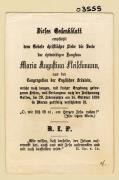 Abstract: Sterbebild von Maria Augustina Fleischmann aus der Congregation der Englischen Fräulein Gest. am 14.10.1876 in Meran im 29. Lebensjahr ohne Foto