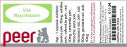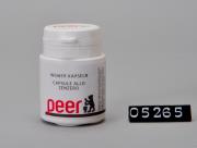 Abstract: Runde Dose aus weißem Kunststoff mit Sicherheits-Drehverschluss für Kapseln. Seitliche Naht. Boden mit geteiltem Standring. Deckel bedruckt mit Logo der Peer Apotheke, Brixen. Boden geprägt mit Volumenangabe EP 100 und Recycling-Code für PD-HE. Enthält 60 Kapseln. Zur Beruhigung des Magens.