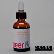 Abstract: Brauner, runder zylindrischer Flaschenkörper mit abfallender Schulter und Seitennaht. Mündungsrand verstärkt, mit Schraubgewinde. Schwarzer Drehverschluss aus Polypropylen (PP) mit Tropfenzähler aus farlosem Glas und Kunsstoffkappe aus Polyvinylchlorid (PVC). Bodenrand geriffelt. Bodenprägung: 30, die Zahl 39 und ein Blumensymbol. Enthält Propolistropfen, zur Stärkung des Immunsystems.