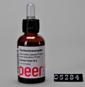 Abstract: Brauner, runder zylindrischer Flaschenkörper mit abfallender Schulter und Seitennaht. Mündungsrand verstärkt, mit Schraubgewinde. Schwarzer Drehverschluss aus Polypropylen (PP) mit Tropfenzähler aus farlosem Glas und Kunsstoffkappe aus Polyvinylchlorid (PVC). Bodenrand geriffelt. Bodenprägung: 30 und die Zahl 22. Bei Ohrenbeschwerden nach Tauchgängen.