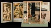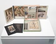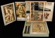 Abstract: Serie D (edizione tratta da 30 scatole non numerate, assemblate da Jacqueline Matisse Monnier) - La Boîte-en-valise (francese: scatola-in-valigia) di Duchamp riproduce una sorta di museo in miniatura. All'interno della scatola rivestita di tela verde sono inserite 69 repliche in miniatura di opere dell'artista corredate da didascalie su carta. Le miniature vengono riposte all'interno della scatola tramite un sistema di inserimento ideato appositamente per quest'opera. La lista delle repliche in miniatura con didascalia: - "50 cc air de Paris" (Ready made; haut. 0m12) Paris, 1919 Coll. Arensberg - "...pliant,... de voyage." (Ready made; haut. 0m23) New York, 1917 - "Fountain" by Richard MUTT (Ready made; haut. 0m60) New York, 1917 - "Why Not Sneeze, Rrose Sélavy?" Rrose Sélavy, New York 1921 0m26 x 0m15 x 0m14 (Fer peint, marbre, bois, thermomètre) Coll. Arensberg - "3 stoppages èlalon" (Fil; haut. moins d'un mètre) Paris 1913-14 et leurs 3 règles à tracer Coll. Dreier - "Sonate" (Huile; 1m42 x 1m12) Rouen Jan. 1911 terminé Neuilly, Sept. 1911 Coll. Arensberg - "La broyeuse de chocolat" La broyeuse de chocolat (Huile-Fil-mine de plomb 0m64 x 0m53) Paris, Fév. 1914 Coll. Arensberg - "Moulin à café" (Huile; haut. 0m33) Neuilly, Oct. 1911 Coll. Lignières - "Nu descendant un escalier" (Huile; haut. 1m45) - Neuilly, Jan, 1912 Coll. Arensberg - "Mariée" (Huile; haut. 1m) Münich Août 1912 Coll. Arensberg - "Le roi et la reine entourés de nus vites" (Huile; haut. 1m30) Neuilly, May 1912 Coll. Arensberg - "La Mariée mise à nu par ses célibataires, même" (Verre; haut. 3m) New York 1915-23 Coll. Dreier - "Tu m'" (Huile; mine de plomb, goupillon) New York 1918 Coll. Dreier - "Ready made" (Acier - 0m16 x 0m03 x 0m002) New York, Feb. 17 1916, 11: A.M. Coll. Arensberg - "9 moules malie" (Verre; 1m long.) Paris, 1914 Coll. Rochè - "L.H.O.O.Q." (Ready made rectifié; haut. 0m18) Paris 1919 - "Soins dentaires du Dr Tzanck" Paris 1919 (dimensions originales) Coll. Tzanck - "Ready made rectifié" New York 1923 (haut. 0m50) Coll. Hellstrom - "tiré à 30 exemplaires" Paris 1924 (dimensions originales) - "Bottle Rack" Haut. 0m59, diam. base 0m37) Paris 1914 Coll. Man Ray - "Ready made" (Bois; haut. 0m40) New York 1917 - "In advance of the broken arm" (Ready made; haut. 1m) New York 1915 - "Ready made malheureux" (Précis de géométrie; haut. 0m21) Paris 1919 - "Sculpture de voyage" (Caoutchouc; dimensions variables) Buenos Aires, 1918 Coll. Dreier - "Pharmacie" (Ready made; haut. 0m25) Rouen, Jan. 1914 Coll. Man Ray - "Roue de bicyclette", "Trébuchet" Roue de bicyclette (exemplaire 1916) Trébuchet (porte-manteau accroché au sol - 1917) - "Apolinère enameled" (Ready made rectifié; long. 0m33) New York 1916-17 Coll. Arensberg - "Ready made Aidé" (à bruit secret) New York Pâques 1916. (Laiton, corde; 0m12 x 0m12 x 0m12) Coll. Arensberg - "Ready made Aidé" - "Médiocrité" (Mine de plomb; haut. 0m14) Neuilly, 1912 Coll. Breton - "Portrait" (Huile; haut. 1m45) Neuilly 1911 Coll. Arensberg - "A propos de jeune soeur" (Huile; haut. 0m70) Rouen, 1911 Coll. Rochè - "YVONNE ET MAGDELEINE DÉCHIQUETÉES" (Huile; long. 0m70) Veules, Sept. 1911 Coll. Arensberg - "Encore à cet astre" (Mine de plomb; haut. 0m23) Neuilly, 1912 Coll. Arensberg - "Portrait père" (Huile; haut. 0m81) Rouen, 1910 Coll. Arensberg - "Portrait du Dr. Dumouchel" (Huile; haut. 1m) Neuilly, Avril 1910 Coll. Dumouchel - "Le Buisson" (Huile; haut. 1m30) Neuilly, Déc. 1910 Coll. Arensberg - "Partie d'éhecs" (Huile; larg. 1m46) Puteaux Août 1910 Coll. Tovell - "À regarder d'un oeil, de près, pendant presque une heure" (Verre, rouille, argenture; haut. 0m45) Buenos Aries, 1918 Coll. Dreier - "Couverture" (collaboration avec Man Ray). New York, Avril 1921 (dimensions originales) - "Témoins oculistes" (à regarder en transparence) Papier carbone; haut. 0m33 New York 1920 Coll. Arensberg - "Coeurs volants" (Couverture, Paris 1936) - "Jeune homme triste dans un train" (Huile; haut. 0m81) Neuilly, Déc. 1911 Coll. Pach - "Joueurs d'echecs" Neuilly, Oct. 1911 (Encre et fusain; 0m40 long.) Coll. Arensberg - "Joueurs d'échecs" (Huile; haut. 0m54) Neuilly Déc. 1911 Coll. Villon - "Portrait de joueurs d'échecs " (Huile; 0m97 x 0m97) Neuilly, Oct. Nov. 1911 Coll. Arensberg - "Nu descendant un escalier" - esquisse- (Huile, carton; haut. 0m95) Neuilly, Déc. 1911 Coll. Arensberg - "Rotative plaques verre" -Point de vue à 1m dans l'axe- (1m70x1m25x1m) New York, 1920 Coll. Dreier - "Rotative demi-sphère" -Point de vue à 1m dans l'axe- (1m50x0m70x0m50) Paris, 1925 Coll. Roché - "Rotative plaques verre" (Stéréoscopie Man Ray) New York, 1920 - "Stéréoscopie à la main" (Photo rehaussée; haut. 0m05) Buenos Aires, 1918 Coll. Dreier - "Rotorelief" Disque optique (dimensions originales) Faire tourner à 35 tours par minute Paris, 1935 - "2 nus: un fort et un vite" (Dessin; haut. 0m20) Neuilly, 1912 Coll. Bomsel - "Le roi et la reine traversés par des nus vites" (Aquarelle; 0m45 long.) Neuilly, 1912 Coll. Arensberg - "Le roi et la reine traversés par des nus vites" Neuilly, 1912 (Dessin; 0m40 long.) Coll. Arensberg - "Cimetière des uniforme set livrées" (Mine de plomb; long. 0m35) Paris, 1913 Coll. Arensberg - "Glissière" (vue de dos) Verre Coll. Arensberg, Philadelphia Museum of Art - "Broyeuse de chocolat" (Huile; haut. 0m60) Neuilly, Avril 1913 Coll. Arensberg - "Elevage de poussière" (Dos du grand verre; détail.) Photo Man Ray, New York, 1920 - "Combat de boxe" (Dessin rehaussé; haut. 0m41) Paris, 1913 Coll. Arensberg - "Le passage de la Vierge à la Mariée" (Huile; haut. 0m60) Münich, Juillet-Août 1912 Coll. Muséum of Modern Art, New York - "Vierge" (Mine de plomb; haut. 0m36) Münich, 1912 Coll. Gallatin - "Vierge" (Dessin rehaussé; haut. 0m35) Münich, 1912 Coll. Arensberg - "La mariée mise à nu par les cèlibataires" (Dessin; haut 0m21) Münich, 1912 Coll. Candel - "La bagarre d'Austerlitz" (Fen