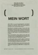 Abstract: "My Word" è un lavoro pubblio dell'artista Jochen Gerz svoltosi nel 1999 in concomitanza con la mostra di Museion "Res Publica". Per mezzo di annunci pubblicitari sui quotidiani Dolomiten e Alto Adige, l'artista ha esortato gli interessati a consegnare a Museion, scrivendo sul foglio di giornale, la parola che in assoluto ciascuno ritenesse essere la più cara o la più importante. Le parole scritte vennero poi consegnate ed esposte a Museion. Ai 245 partecipanti venne consegnata in forma di comodato da parte del museo una t-shirt concepita appositamente dall'artista, sulla quale scrivere la propria parola e da poter indossare o esporre a casa propria. "My Word" continua a fare parte della collezione pubblica di Museion, indifferentemente se le t-shirt siano in uso o siano andate perse o dimenticate. Dopo Bolzano, "My Word" si svolse al confine tedesco-danese a Kiel (Kunsthalle Kiel) e TØndern (SØnderjyllands Museum) ed al confine tra il Canada e gli Stati Uniti a Windsor e Detroit (Art Gallery of Windsor). L'invito è sempre stato indirizzato a due gruppi linguistici.