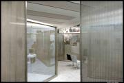 Abstract: Esemplare unico - Installazione (Padiglione) composto da tre parallelepipedi collegati tra di loro per mezzo di un unico corridoio. Il padiglione con pareti in acciaio inossidabile, vetro e specchi semiriflettenti è pensato come uno spazio per ospitare installazioni video o audio.