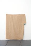 Abstract: Ed. unique - Telo di ciotoli appeso a parete tramite due ganci metallici. Sul bordo sinistro, sporgente rispetto al resto del telo, l'artista ha fissato la lattina vuota di una bibita.