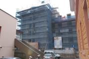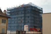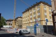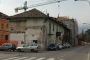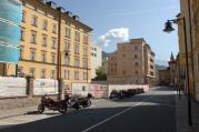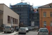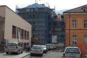 Abstract: Blick von der Carducci-Straße auf das "Alte Spital" und die Baustelle der Freien Universität Bozen