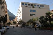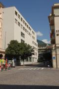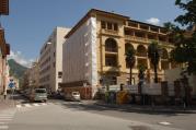 Abstract: Blick vom Sernesiplatz auf das Hauptgebäude der Freien Universität Bozen