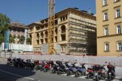 Abstract: Blick von der Spitalgasse auf das "Alte Spital" und die Baustelle der Freien Universität Bozen, im Vordergrund geparkte Scooter