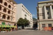 Abstract: Blick vom Dominikanerplatz auf das Hauptgebäude der Freien Universität Bozen, das Gebäude der INPS-NISF und das Gebäude (delle assicurazioni)