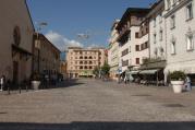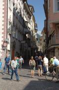 Abstract: Blick vom Dominikanerplatz in die Johann-Wolfgang-von-Goethe-Straße in Bozen, mit Passanten