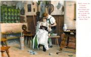 Abstract: Ansichtskarte (Postkarte) mit einer kolorierten fotografischen Abbildung eines Paares in einer Sube. Dabei steht der Spruch: "Weil's woass wie d'Busseln schmecka, iatzt kriagt's gar nimmer gnua, und er thuat wia a Vielfrass und is ihr do der liabste Bua!". Unbeschriftet.