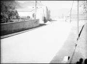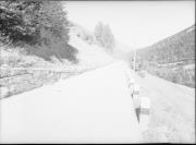 Abstract: Ripresa in esterno. Strada. Insegna con l'iscrizione "A.A.S.S. [?]artimento di Bolzano. [?]ri di costruzione [?]e stradale di Bressanone. Dott. Ing. Zanotti Vittorio.", sotto l'insegna un uomo. Indicatori stradali con l'iscrizione "Brennero km 44", "Bressanone". Due bambini. Al basso l'ombra del fotografo e della sua fotocamera