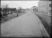 Abstract: Ripresa in esterno. Strada in un paese. Al basso l'ombra del fotografo e della sua fotocamera