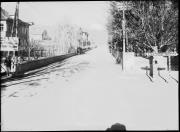 Abstract: Ripresa in ersterno. Strada in un paese. Uomini in uniforme