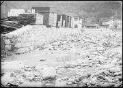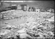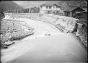 Abstract: Ripresa in esterno. Fiume. Segheria. Sullo sfondo un edificio con l'iscrizione "Trattoria Val d'Ega"