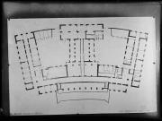 Abstract: Riproduzione. Pianta del alazzo giustizia a Bolzano con l'iscrizione "Bolzano - Palazzo della giustizia." e "piano seminterrato - rapp. 1:100"