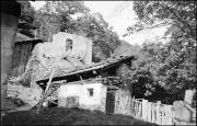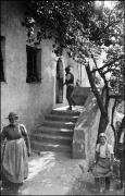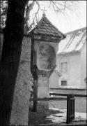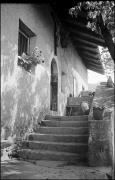 Abstract: Hausecke mit Fresko aus dem 15. Jahrhundert (Pietà mit Johannes und Magdalena) von Huber/Huibe/Alte Hube in Kiens im Jahr 1934, vermutlich Richtung Südosten fotografiert. Der Hof wurde 1939/40 abgebrochen.