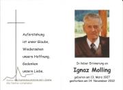Abstract: Sterbebild von Ignaz Molling geb. am 13.03.1927 gest. am 14.11.2012