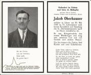 Abstract: Sterbebild von Jakob Oberhauser gest. 20.05.1958