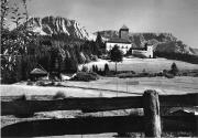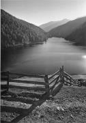 Abstract: Panorama des Durnholzer Sees, mit Holzzaun im Vordergrund, vom Nordufer gegen das Dorf.
