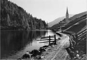 Abstract: Durnholzer See mit Fahrweg am Ufer, gegen Kirche.