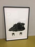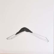 Abstract: Disegno a penna a sfera. Raffigurazione di una struttura nera, amorfa su un piedistallo. Sul retro in basso titolo, data e firma d’autore scritti a mano con matita a grafite fina: “O.T., 2016 Kathrin Partelli”.