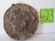 Abstract: Bemalter, kreisrunder Gipsabdruck mit der Darstellung eines Frauenkopfes im Profil..