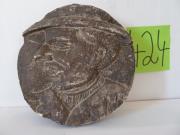Abstract: Bemalter, kreisrunder Gipsabdruck mit der Darstellung eines Männerkopfes mit Hut im Profil..