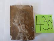 Abstract: Bemalter, rechteckiger Gipsabdruck mit der Darstellung eines Frauenkopfes im Profil.
