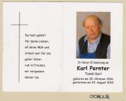 Abstract: Sterbebild von Karl Pernter, Tombl Karl Geb. am 25.10.1926, gest. am 29.08.2010 mit Foto