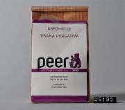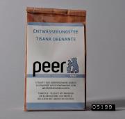 Abstract: Stehbodensack mit Cellophan: brauner 2-lagiger Blockbodenbeutel mit zwei Seitenfalten und einem festen Bodenblatt, bestehend aus braunem, ungebleichtem Kraftpapier und Cellophan (Polypropylen, transparent) für Kräutermischungen. Befüllt mit Entwässerungstee. Zwischen den beiden Lagen des Säckchens: auf der Vorderseite eingeschobenes Etikett mit Produktnamen, Verwendung, sowie Logo der Peer-Apotheken Brixen und Lana, auf der Rückseite Einschub mit Zusammensetzung, Gebrauchsanleitung und Warnhinweisen. Mündung gefalzt und verschlossen mit einem ca 11 cm langen Verschlussstreifen aus weißem, mit Draht verstärktem Papier. Am Boden selbstklebendes Schild mit Herstellungsdatum, Chargennummer, Aufbrauchfrist, Preis und Barcode.