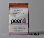 Abstract: Stehbodensack mit Cellophan: brauner 2-lagiger Blockbodenbeutel mit zwei Seitenfalten und einem festen Bodenblatt, bestehend aus braunem, ungebleichtem Kraftpapier und Cellophan (Polypropylen, transparent) für Kräutermischungen. Befüllt mit Balancetee. Zwischen den beiden Lagen des Säckchens: auf der Vorderseite eingeschobenes Etikett mit Produktnamen, Verwendung, sowie Logo der Peer-Apotheken Brixen und Lana, auf der Rückseite Einschub mit Zusammensetzung, Gebrauchsanleitung und Warnhinweisen. Mündung gefalzt und verschlossen mit einem ca 11 cm langen Verschlussstreifen aus weißem, mit Draht verstärktem Papier. Am Boden selbstklebendes Schild mit Herstellungsdatum, Chargennummer, Aufbrauchfrist, Preis und Barcode.